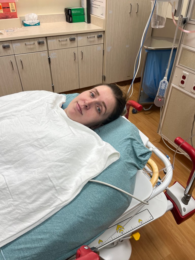 We sat there for another few minutes. By this point, I felt so cold and truly felt like sleeping. I remember thinking about how in every movie or TV show, when somebody had been injured and is bleeding out and they want to sleep, everyone says “no no don’t go to sleep! Stay with me!” and that’s what I thought as I began to feel very sleepy. “Can you go tell them that I feel very sleepy? Like I just want to sleep,” I said to my husband. He turned on his heels and quick stepped right over to that first triage nurse again. “Uh, she said she feels really sleepy,” I heard him say. And then she was at my side almost immediately. “Let me take your blood pressure again,” she said to me as she wrapped the cuff around my right arm. And after a moment, “we’re gonna take you back now.” And there we had it. Finally, I was going to be seen. But also, uh oh. Probably not good.