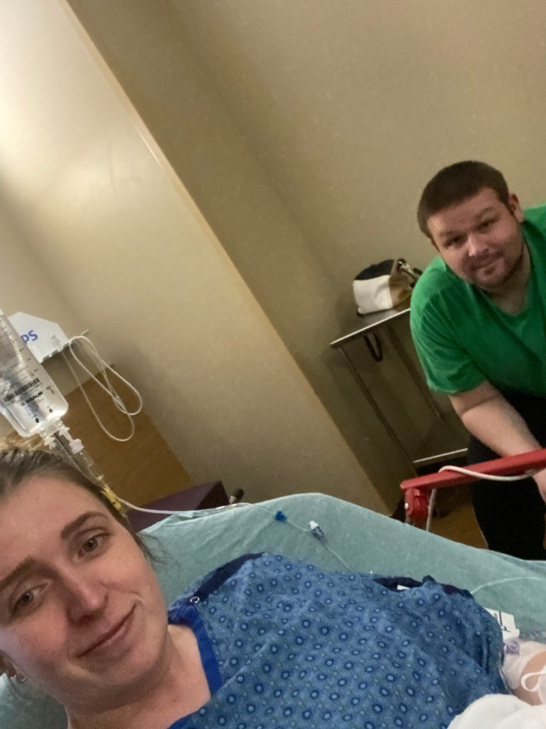 You aren’t supposed to take pictures in the ultrasound room but I figured that meant of the screen and our baby was no longer with us (to be very crass and terrible) so I took pictures of my husband and me to update family.