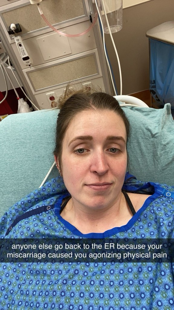 Anyway, after the ultrasound, Transport came and got us and they brought us back to that Trauma hospital room, where we waited. And waited. I was finally starting to feel better and began texting my family. My husband had taken over communicating to my parents because I was unable to. The last thing I had told my family was that I was going back to the ER. My sister had asked if I was ok, and I said “no” and I think that’s when things felt really scary for everyone.